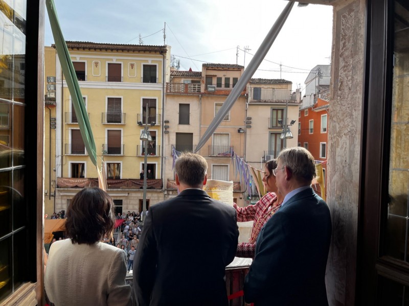 - El cap del Consell, acompanyat per l'alcaldessa, ha tallat la cinta al balcó del Palau Comtal donant inici al certamen de 2022 que torna al seu format d'un cap de setmana després de la pandèmia