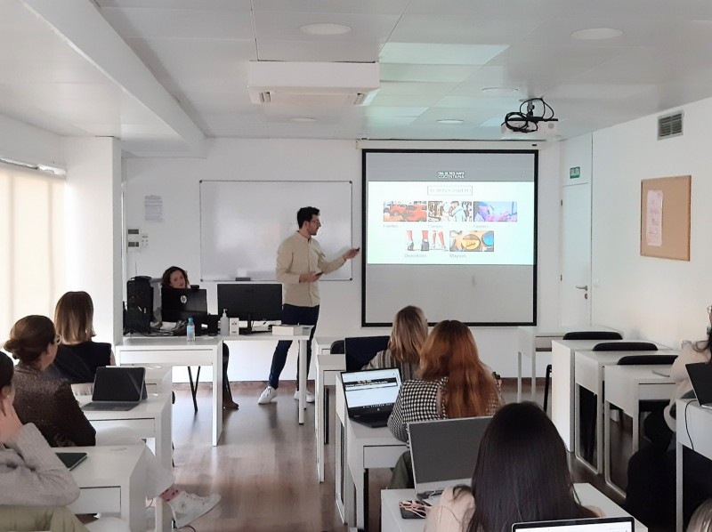 L'alcaldessa de Cocentaina, Mireia Estepa i Jaume Bernabéu, responsable de contingut audiovisual i comunicació de l'esdeveniment, convidats pel professor, Juan Antonio Sánchez, titular de l'assignatura de tercer curs, Estructures i Processos en l'Organització d'Esdeveniments, han sigut els encarregats de detallar el funcionament, organització i característiques d'un esdeveniment, com la Fira, que suma 677 edicions i que cada any treballa per a evolucionar i adaptar l'esdeveniment a les noves tendències conservant les línies tradicionals amb l'objectiu de continuar collint xifres d'èxit de visitants, repercussió mediàtica i turística.