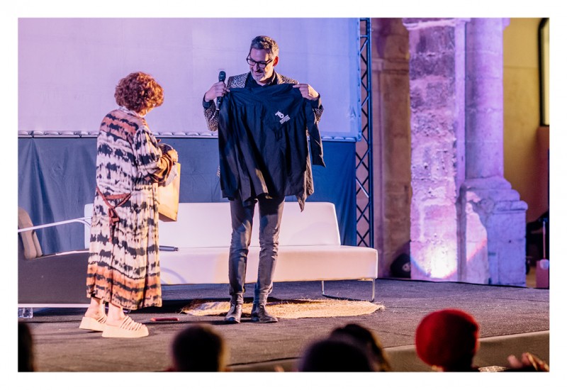 La nit ha començat amb un dels moments més esperats per totes i tots els assistents: la descoberta del cartell de Fira 2023. Per a això, el seu autor Moisés Gil ha sigut el primer a pujar a l'escenari i explicar la seua obra, la qual, recordem, celebra i recorda els 50 anys des que el cavall es fa servir com a logotip i distintiu més reconeixible de la Fira de Cocentaina. Gil ha explicat el procés de creació de la peça, tot destacant la hibridació de tècniques emprades, un fet que caracteritza indiscutiblement la seua obra.