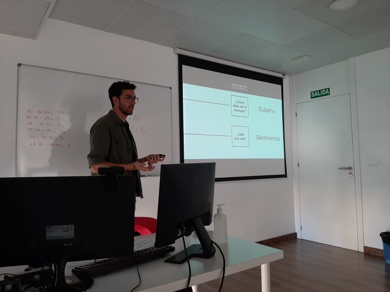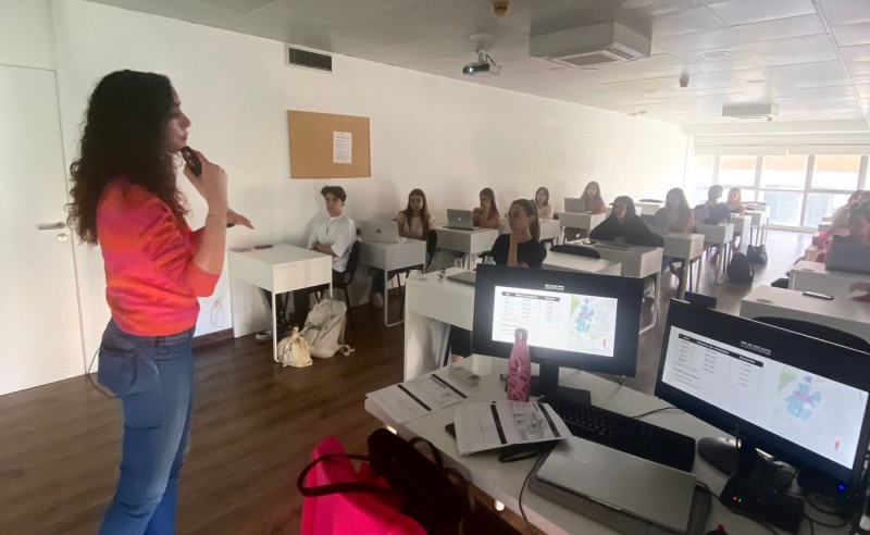 La alcaldessa de Cocentaina, Mireia Estepa i Jaume Bernabéu, responsable de contingut audiovisual i comunicació de Visualcrea, convidats pel professor, Juan Antonio Sánchez, titular de l'assignatura de tercer curs Estructures i Processos en l’Organització d’Esdeveniments, han sigut els encarregats de detallar el funcionament, organització i característiques d’un esdeveniment, com la Fira, capaç de convocar cada any vora 500.000 visitants.