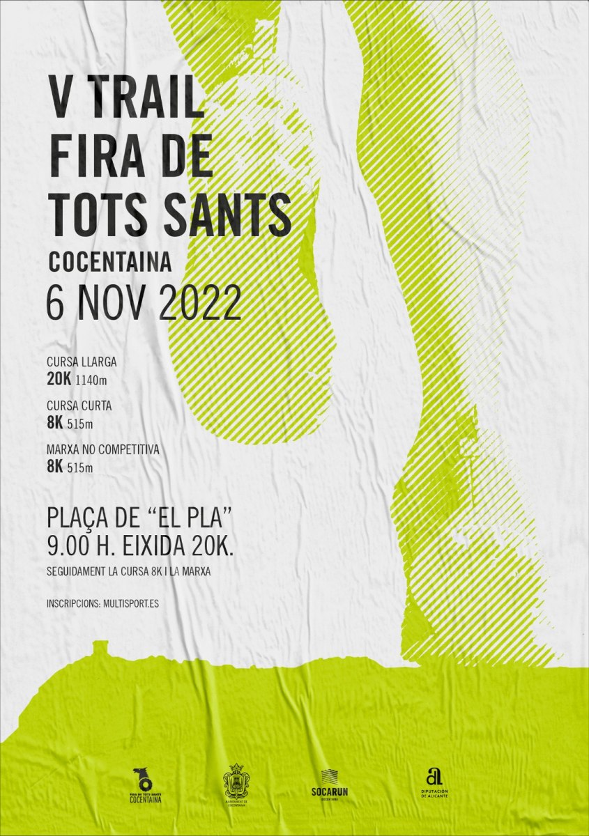 El Trail Fira de Tots Sants de Cocentaina, organitzat per l'entitat esportiva Soca-Run Club d’Esports de Muntanya amb el suport de la Fira de Cocentaina, obri aquest dilluns, 1 d'agost el termini d'inscripció per a la carrera que se celebrarà diumenge que ve, 6 de novembre de 2022, a les 09:00h, i en la qual podrà participar qualsevol persona, major d'edat, sense distinció de sexe o nacionalitat.