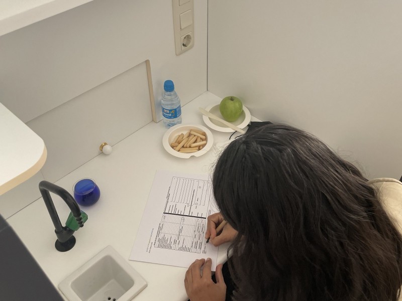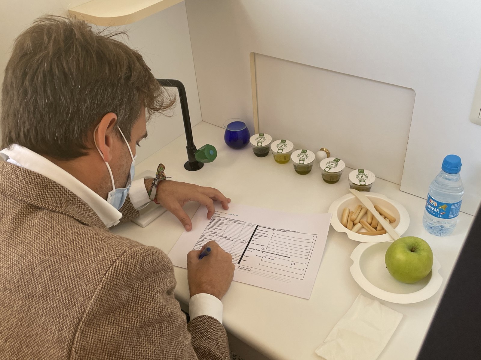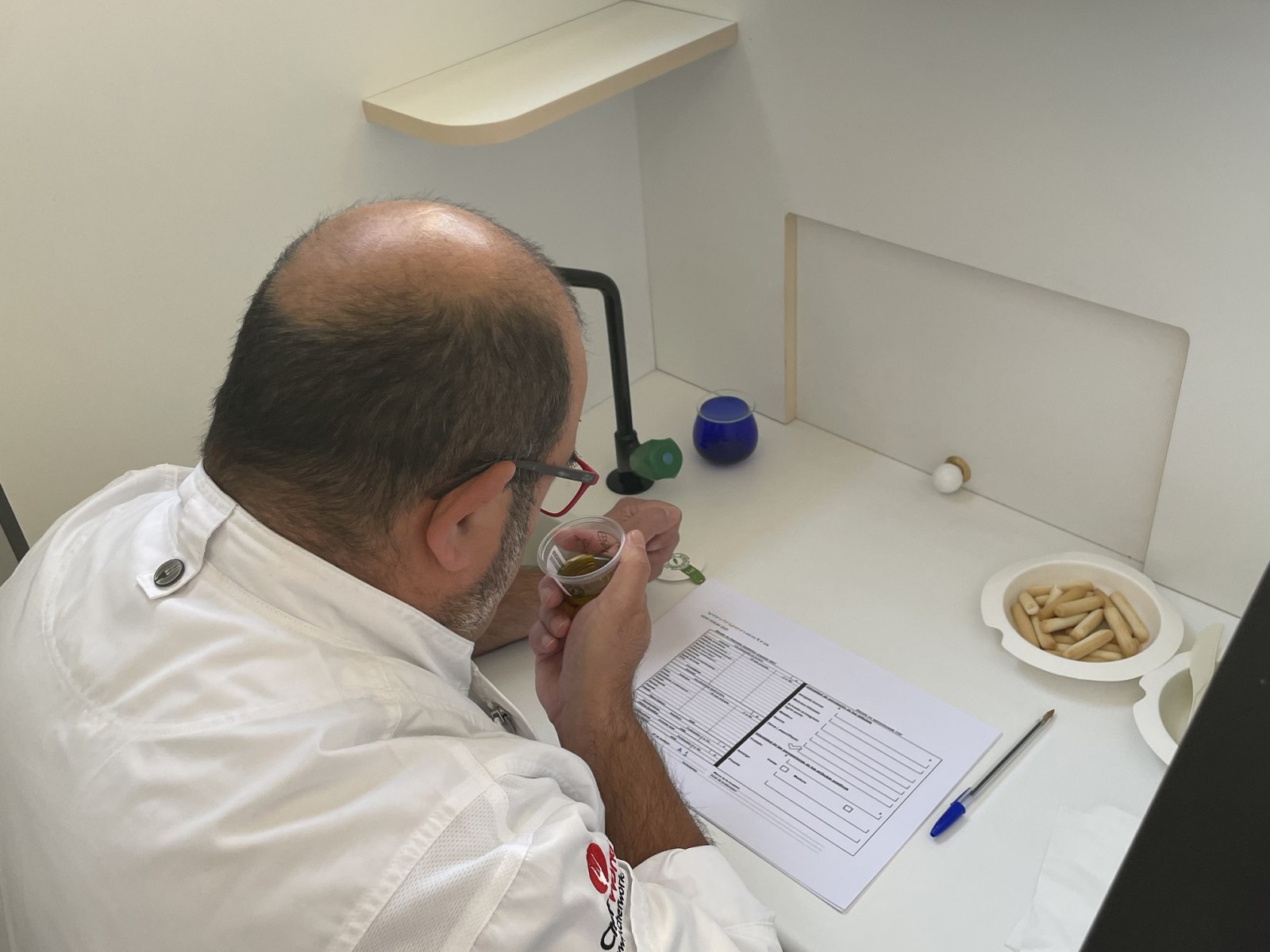 La sala de tastos ha sigut el lloc triat perquè els cinc experts que han conformat el jurat realitzen la valoració de totes i cadascuna de les mostres. Paco Albert i Keiko (el Japó), experts en tastos; Susan Hoover (els EUA) també experta en aquest camp i concursant de Masterchef, Marieles Artega (Veneçuela) especialista en cacau i periodista gastronòmica i Joan Clement (València), Xef del Troç al Plat han avaluat de manera exhaustiva cadascun dels olis. Els tastadors, disposats en cabines individuals, s'han valgut de tot el material necessari segons la norma, COI, aigua, poma i pics per a poder realitzar el procés d'avaluació. El tast no ha estat reglada per un temps concret per a evitar la urgència i que els tastadors pogueren emplenar cadascuna de les fitxes que posteriorment han depositat en uns sobres tancats amb els seus veredictes.